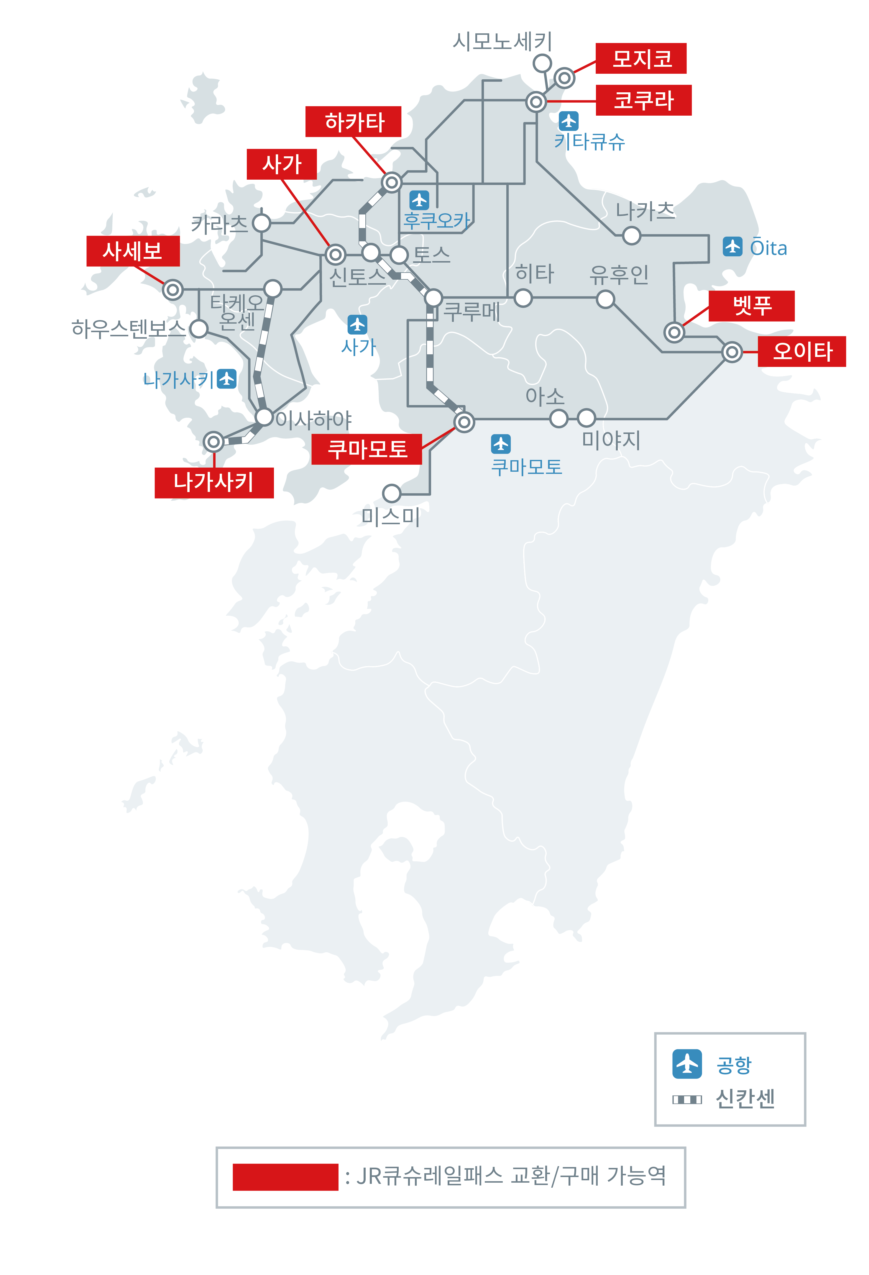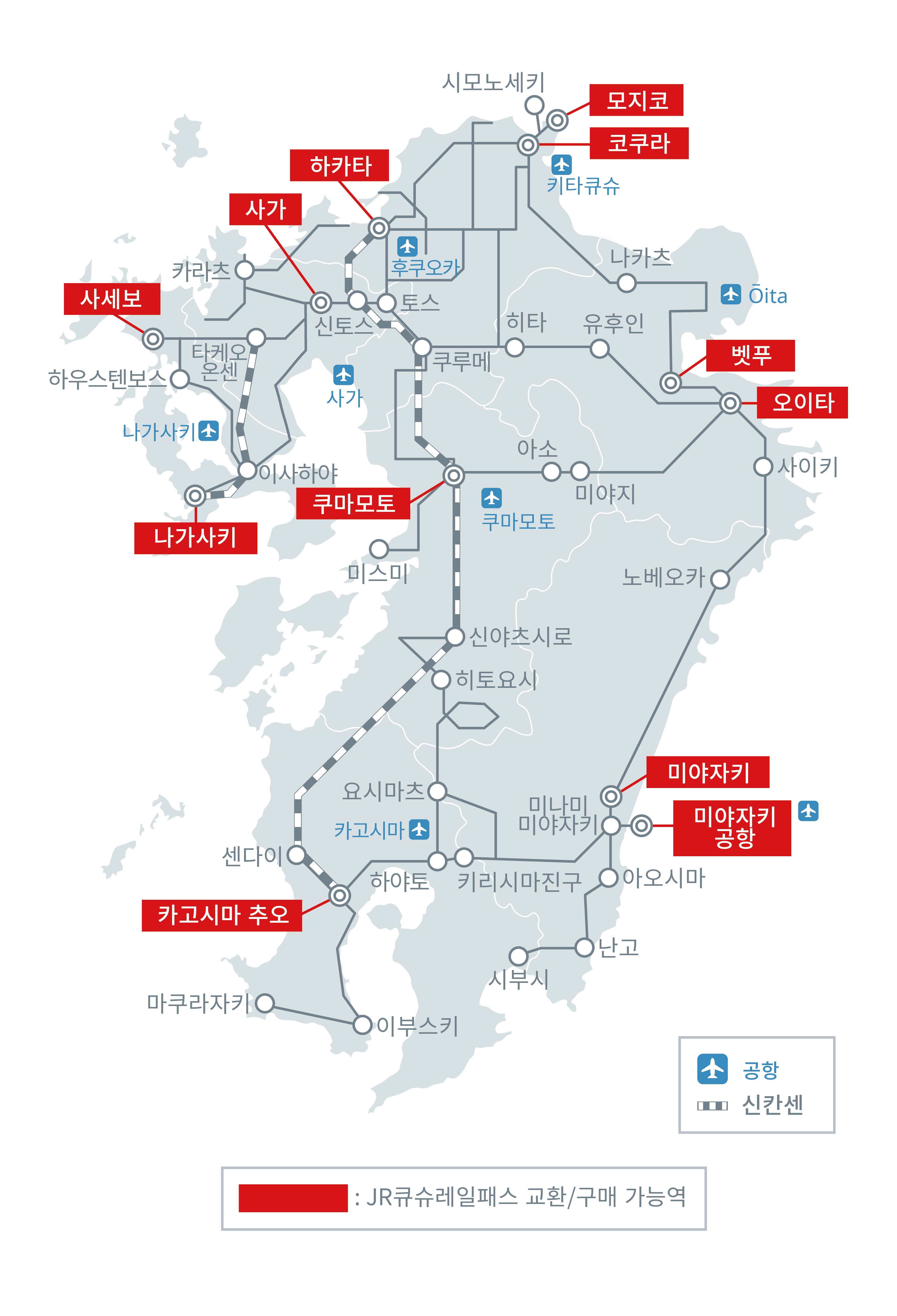 지금 KKday에서 할인가로 JR 큐슈 레일패스를 예약하고, 3/5/7일 동안 북큐슈, 남큐슈 또는 전 규슈 지역 내 JR 철도를 무제한으로 탑승해보세요!