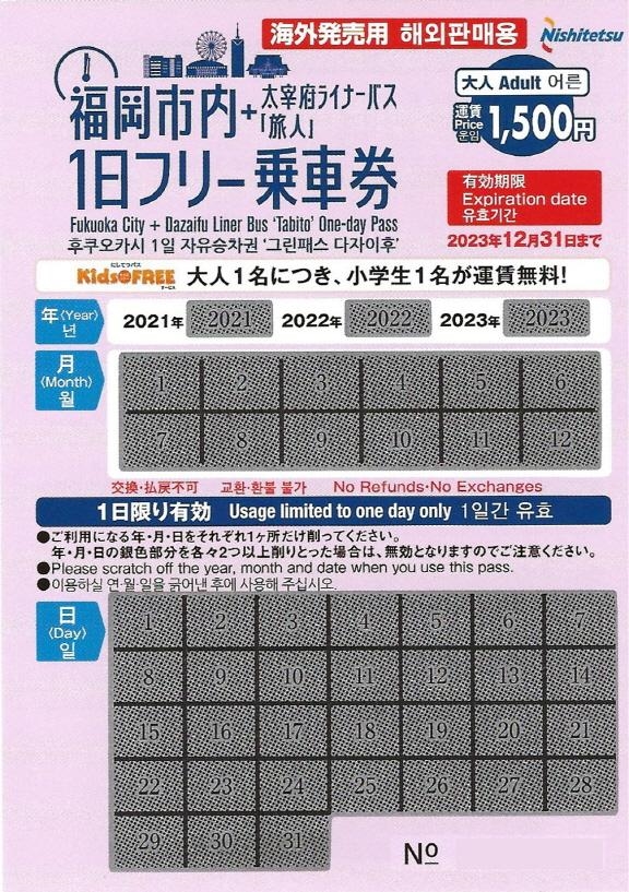 후쿠오카 버스 1일 자유승차권 그린패스 다자이후 - 와그 WAUG